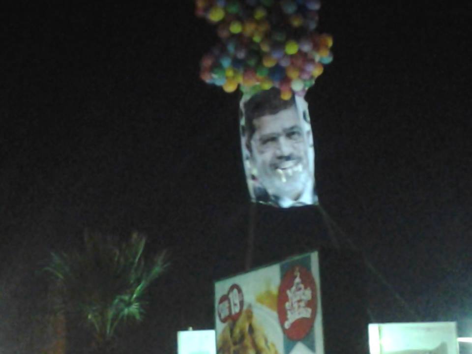 كما أطلقوا  بالونات تحمل صورة الرئيس المصري الدكتور محمد مرسي في سماء الميدان.