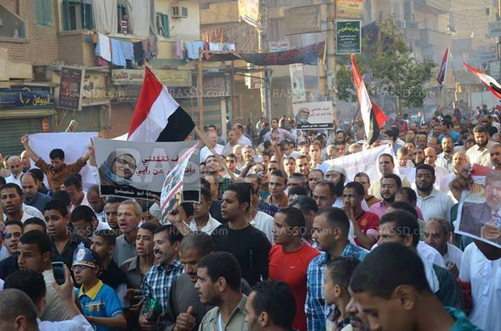 جابت مسيرة حاشدة لآلاف الرافضين للانفلاب العسكري اليوم الخميس عقب صلاة العيد مباشرة مدينة سمالوط، ضمن فعاليات مليونية" عيد النصر ضد الانقلاب".
