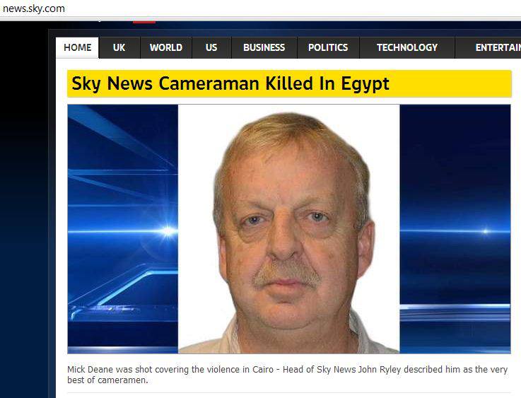 أكدت قناة سكاي نيوز البريطانية مقتل مصورها مايك دين خلال فض اعتصام رابعة العدوية.