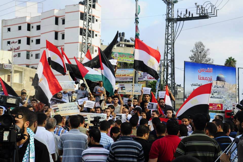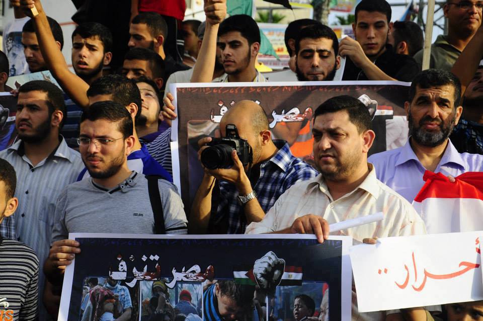 غزة تنتفض ضد مجازرفض اعتصام رابعة والنهضة