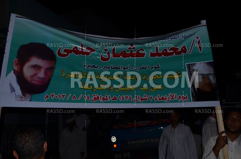 ثم فى مجزرة رابعه الاخيرة فقدت محمد عثمان إبن ال 29 عاما خريج جامعة الازهر كلية لغات وترجمه متزوج وله ولد وشهد له كل اقاربه ومعارفه واهل قريته بخلقه الراقى وطيبته وتدينه.