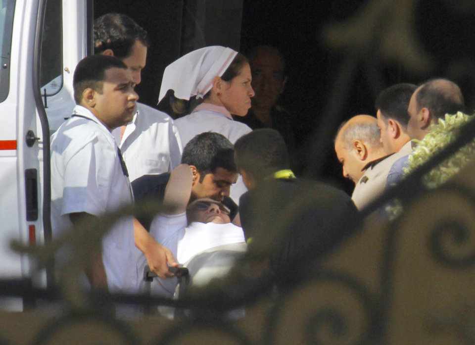 وأوردت الوكالة صورا قالت إنها حصرية تصور اللحظات الأولى لعملية نقل مبارك، 85 سنة، إلى مستشفى المعادي العسكري، محاطا بحماية من القوات المسلحة.