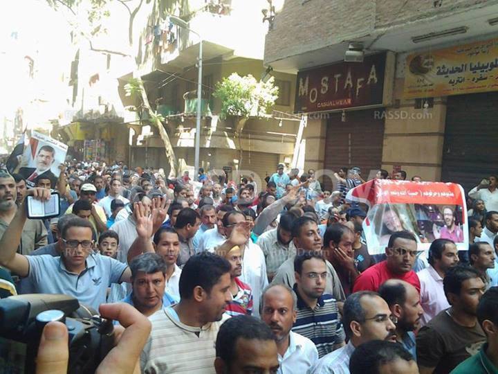 ورفع المتظاهرون  صور شهداء مجزرة سجن أبو زعبل، ولافتات مكتوب عليها "الوراق ضد الانقلاب.. وتؤيد الرئيس مرسي".