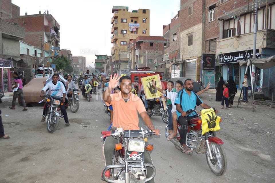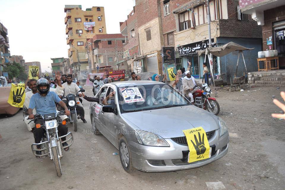 و جابت المسيرة، شوارع المدينة ومنها إلى قرى المركز، رافعين لافتات شعار رابعة ومرددين هتافات مؤيدة للشرعية ومناهضة لحكم العسر، منها "ارحل يا سيسي .. مرسي هو رئيسي" و "الانقلاب هو الارهاب".