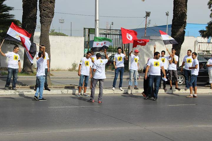 تظاهرأمس عدد من التوانسة بشارع محمد الخامس بالعاصمة تونس، تنديدًا بالانقلاب العسكري، وإعلان مساندتهم للشعب المصري.