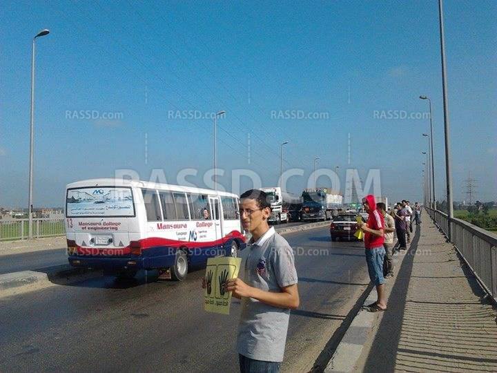 نظم صباح اليوم الثلاثاء شباب ضد الانقلاب سلسلة بشرية أعلى كوبرى الجامعة والطريق السريع بطلخا التابعة لمحافظة الدقهلية.
