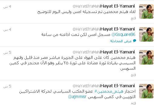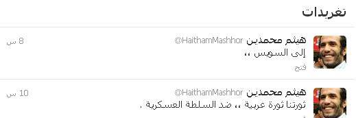 و من الجدير بالذكر أن الناشط الاشتراكى هيثم محمدين قال قبل اعتقاله بالسويس على حسابه الشخصي على موقع تويتر للتدوينات القصيرة " ثورتنا ثورة عربية ضد السلطة العسكرية ", كما يعرف محمدين بمموقفه الرافض للانقلاب العسكري