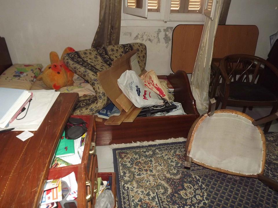 وعن سؤال زوجته وأولاده عن فقد او ضياع اى متعلقاتقالت" لم يفقد شىء ولكن تعمدوا إتلاف كل شىء".