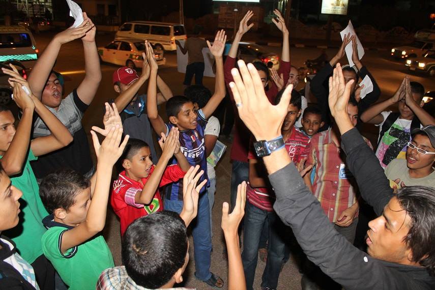 سلاسل بشرية لـ ” شباب ضد الإنقلاب ” بالفيوم