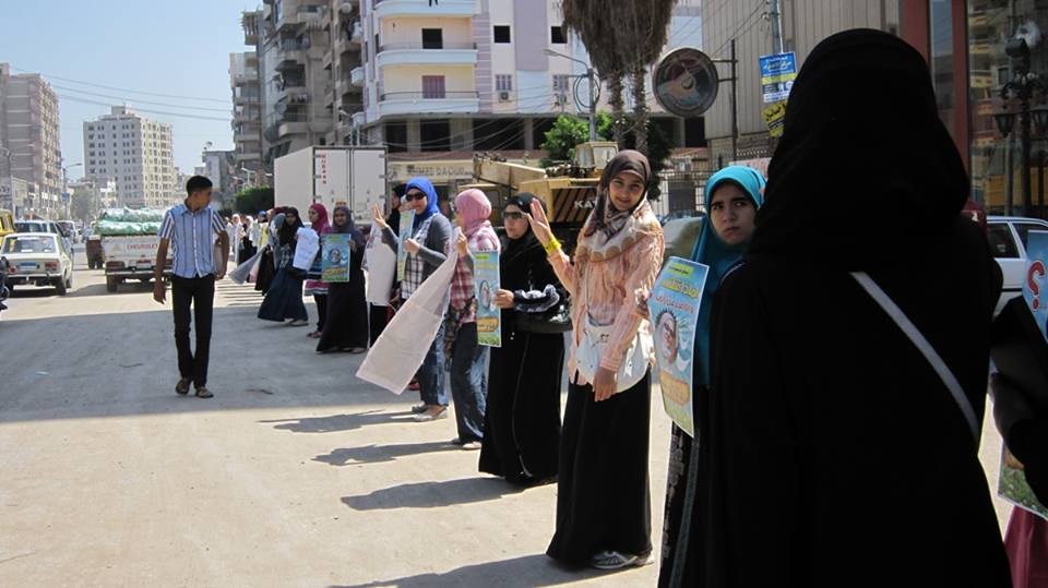 سلسلة بشرية بالمنصورة أمام منزل الشهيدة هالة أبو شعيشع