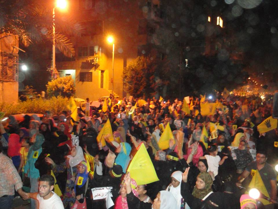 انطلقت مسيرة حاشدة مساءأمس السبت من مسجد التوحيد القريب من شارع الجزائر بحى المعادي رفضا للانقلاب العسكري .