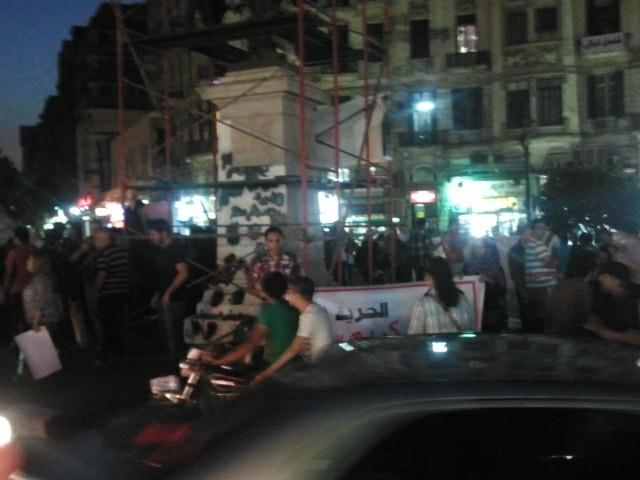 نظمت حركة 6 أبريل وبعض الحركات الشبابية منذ قليل وقفة احتجاجية بميدان طلعت حرب ضد مد قانون الطواريء وحكم العسكر وعودة أمن الدولة.