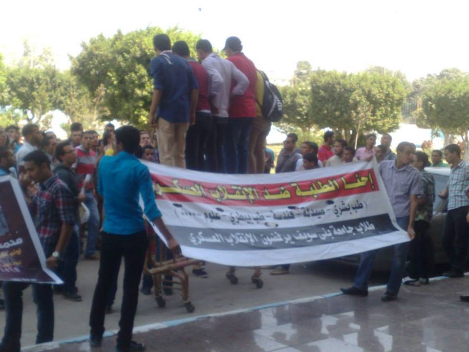 لليوم الثانى على التوالى ومنذ بداية الدراسة تشهد جامعة بنى سويف مظاهرات حاشدة تجوب الجامعة ..