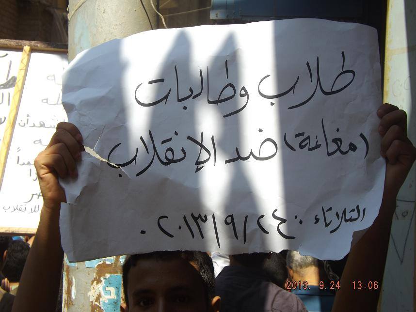 انطلقت مسيرة طلابية مؤيدة للشرعية بمركز مغاغة بمحافظة المنيا ضمت طلبة وطالبات المعهد الأزهري والثانوية العامة.