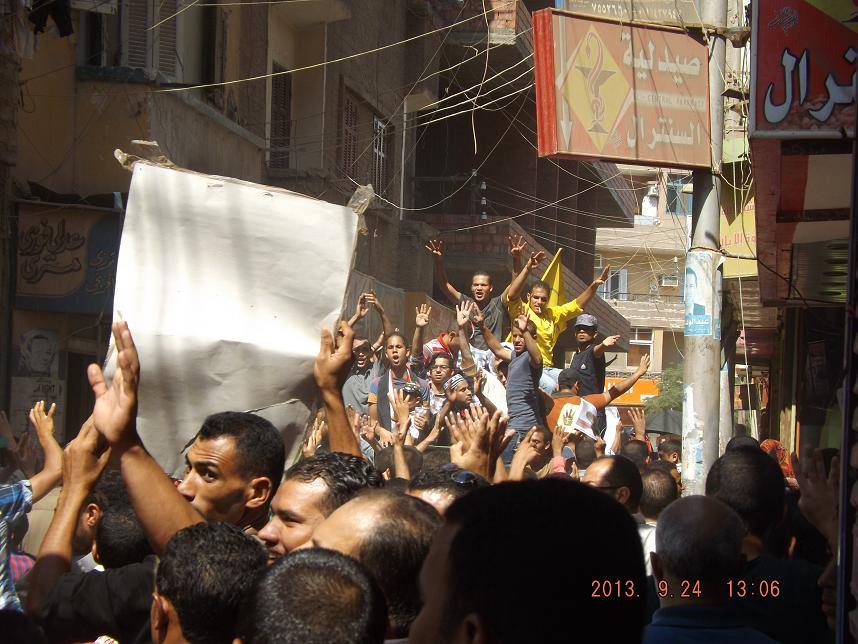 حيث تحركت المسيرة من أمام المعهد الأزهري والتقت مع المسيرة الأخرى التي انطلقت من أمام مسجد الفتح وطافت جميع أرجاء المركز وسط هتافات وتفاعل من الأهالي والمارة
