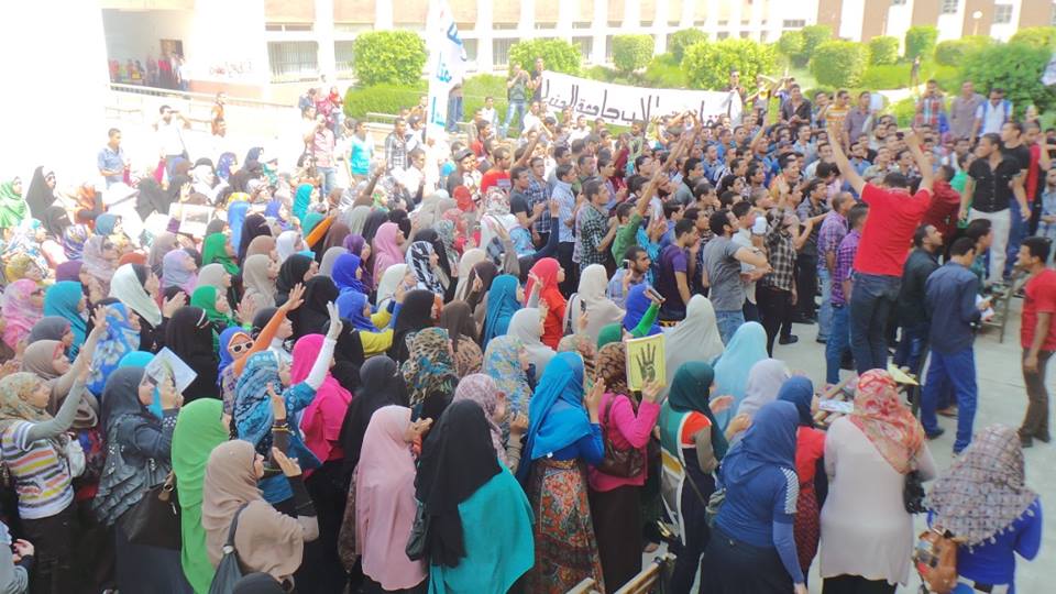 تظاهرات حاشدة بجامعة المنيا لرفض الانقلاب