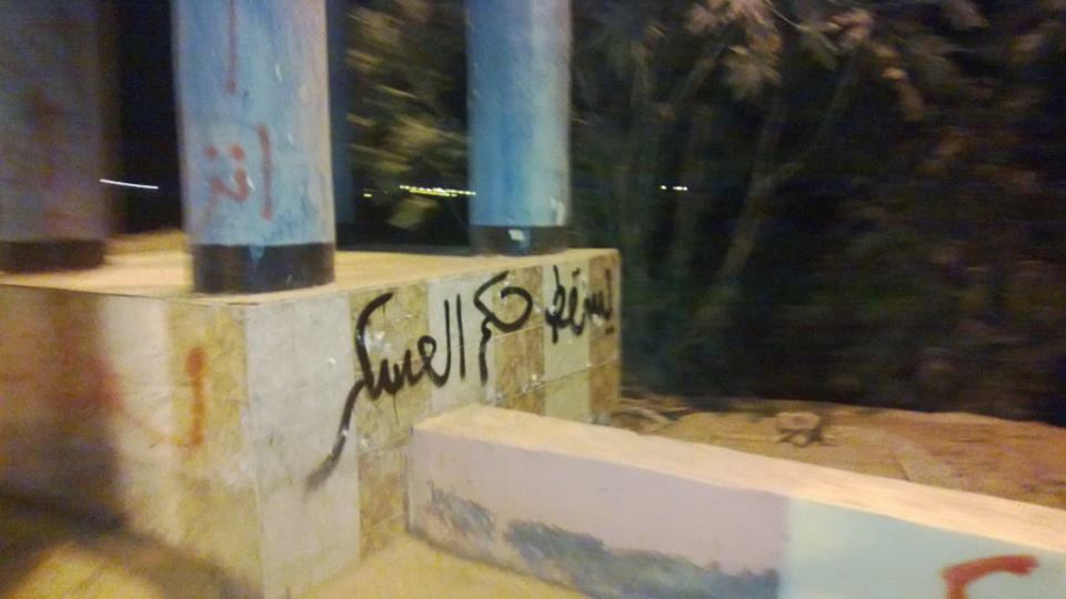 قام بعض أعضاء حركة شباب ضد الانقلاب أمس بكتابة بعض العبارات المناهضة للانقلاب بمدخل مدينة الإبراهيمية بمحافظة الشرقية .
