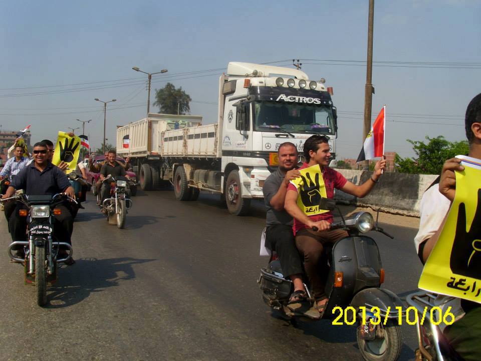 وفي الدقهلية مركزميت غمركانت هناك مسيرة بالموتوسيكلات رفضاً للإنقلاب العسكري بمدينه ميت غمر ضمن فاعليات السادس من أكتوبر.