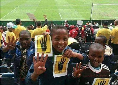 وبالأمس في المباراة التي أقيمت بين الفريق المصري والغاني والتي انتهت لصالح غانا بسداسية رفع بعض أفراد الجمهور الغاني الحاضر للمباراة شارة النصر لرابعة العدوية .