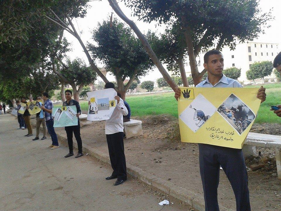قام طلاب جامعة الأزهر بالزقازيق بسلسلة بشرية رافضة للانقلاب العسكري ومجازره الدموية .