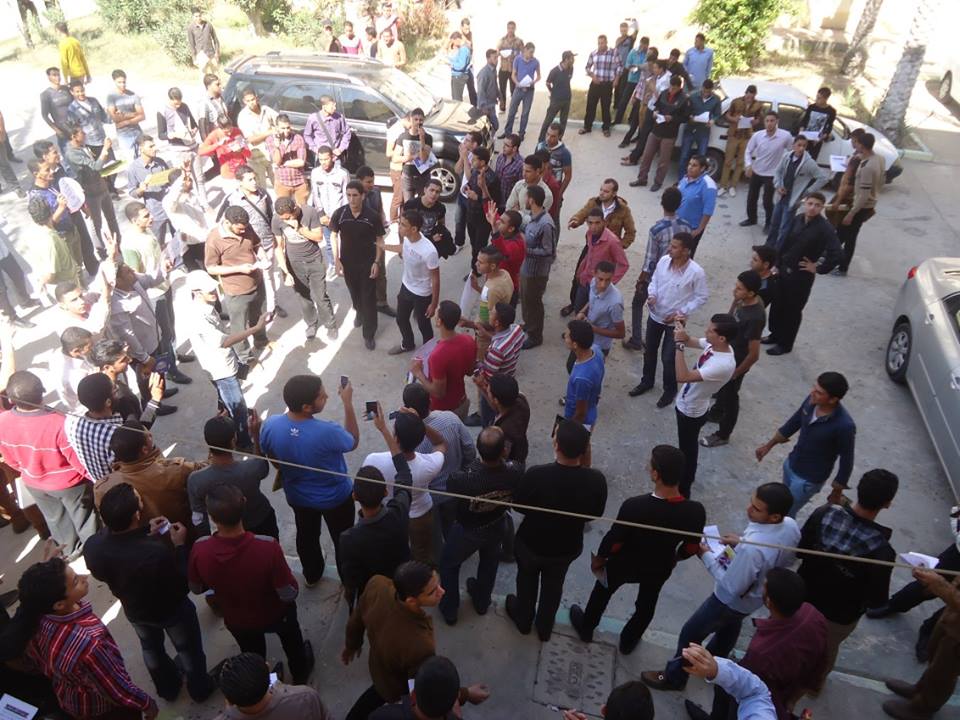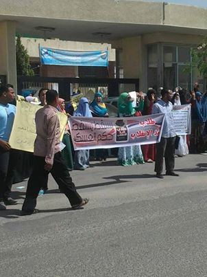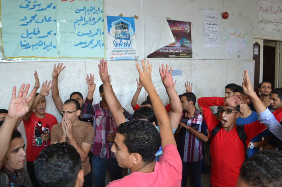 وفي جامعة المنيا نظم رافضوا الانقلاب سلسلة بشرية لاسقاط الانقلاب والافراج عن الطلاب المعتقلين.