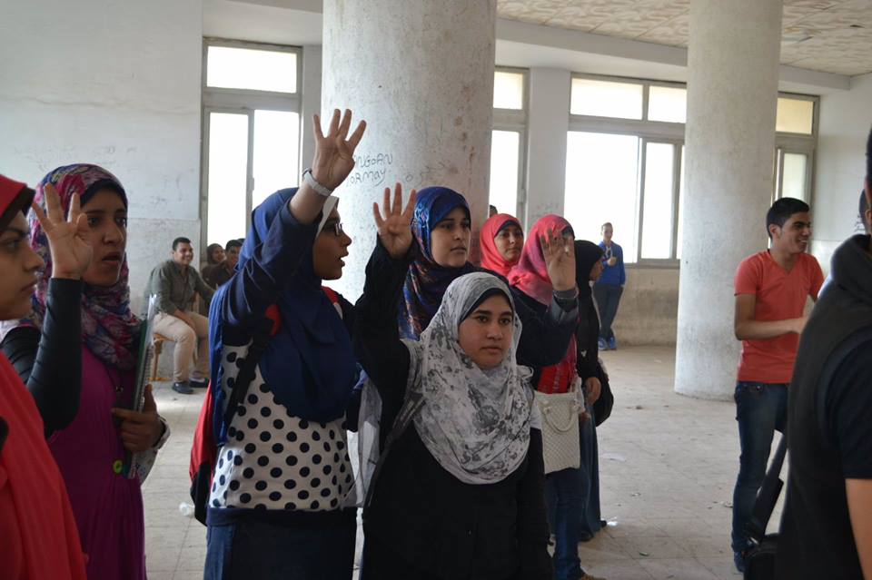 ففي كلية دراسات إسلامية بنات بالإسكندرية  نظمت الطالبات لليوم التالي وقفتهم الاحتجاجية لرفض الانقلاب لدموي وقامت الطالبات برفع شارة النصر لرابعة .