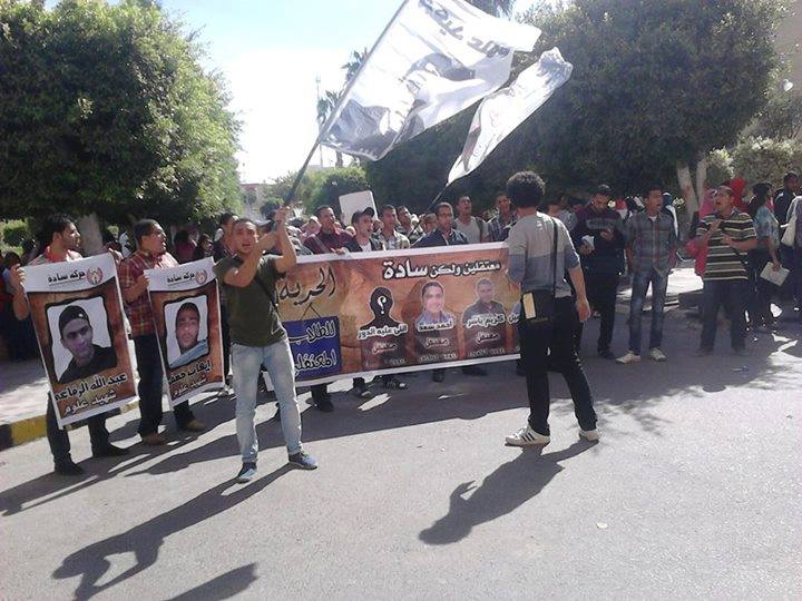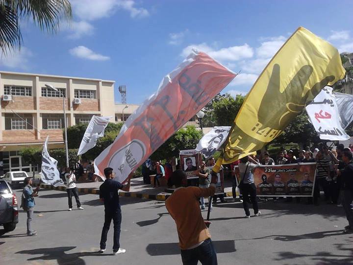 فيما نظم طلاب علوم الاسكندرية وقفة احتجاجية للتنديد بتجديد حبس زميلهم المعتقل كريم ياسر طاف الطلاب أرجاء الكلية كما خرجوا ليكملوا فعالياتهم أمام بوابة الكلية خارجها.و