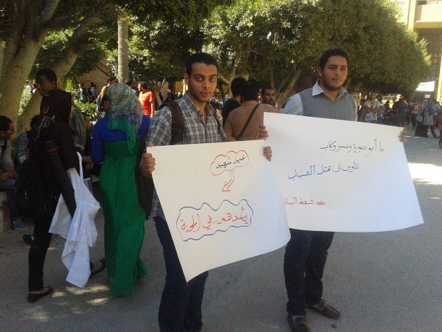 هتف الطالبات " يسقط يسقط حكم العسكر – احنا في دولة مش معسكر " يا سيسي يا غدار – تفرق ايه عن بشار "