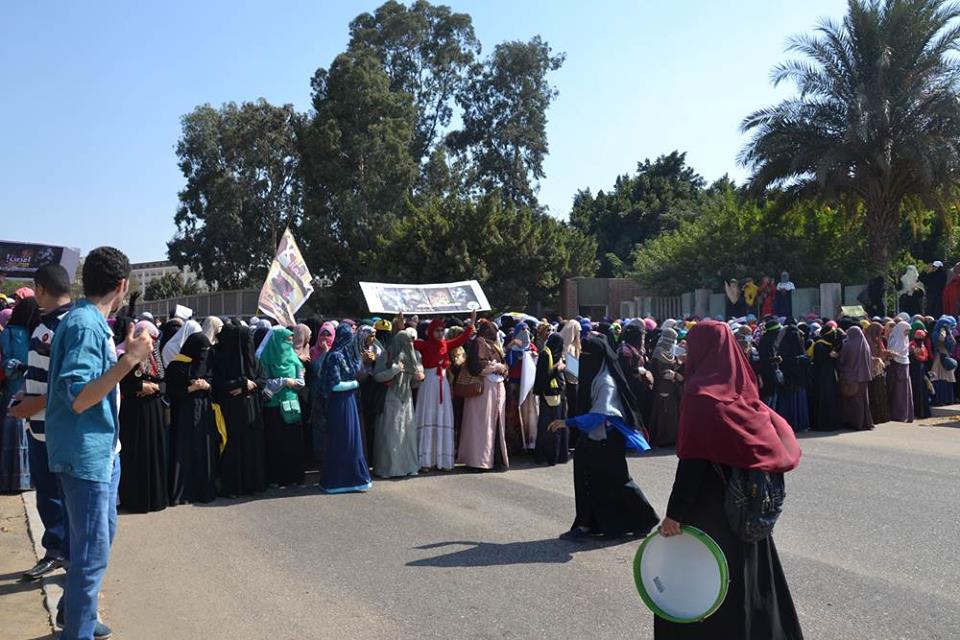 فيما قام البنات بأداء صلاة الغائب على أرواح الشهداء وبعد انتهاء الصلاة قاموا بترديد هتافات منها" رابعة رابعة"و" السيسى قاتل"و" ثوار احرار هنكمل المشوار"، ثم انطلقت المسيرة مرة أخرى الى كلية البنات لاستكمال فعاليتها.