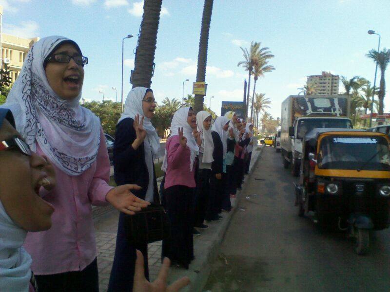 انطلقت مسيره لطلاب ثانوي ضد الانقلاب بالاسكندريه من امام مسجد الفرج بالمندره قبلي للالتحاق بمسيره لكليه درسات اسلاميه بنات ازهر.