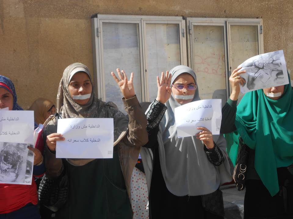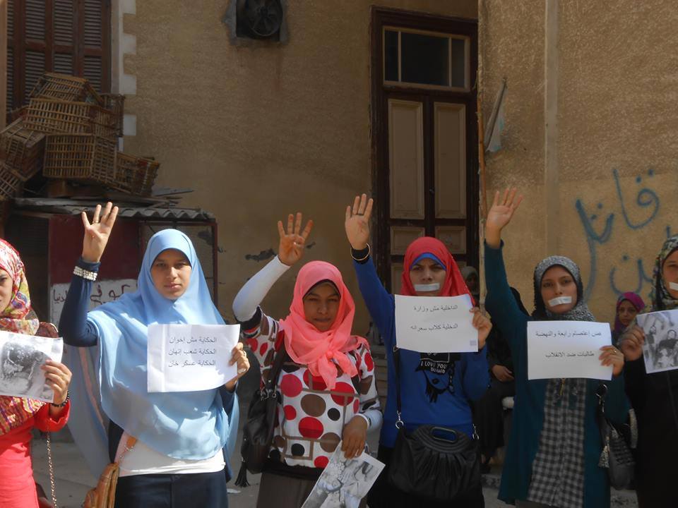 نظمت طالبات كلية الدراسات الإسلامية بمدينة دمنهوربمحافظة البحيرة  صباح اليوم وقفه صامته تنديداً بالانقلاب العسكري, مطالبين بالافراج عن الطلاب المعتقلين .