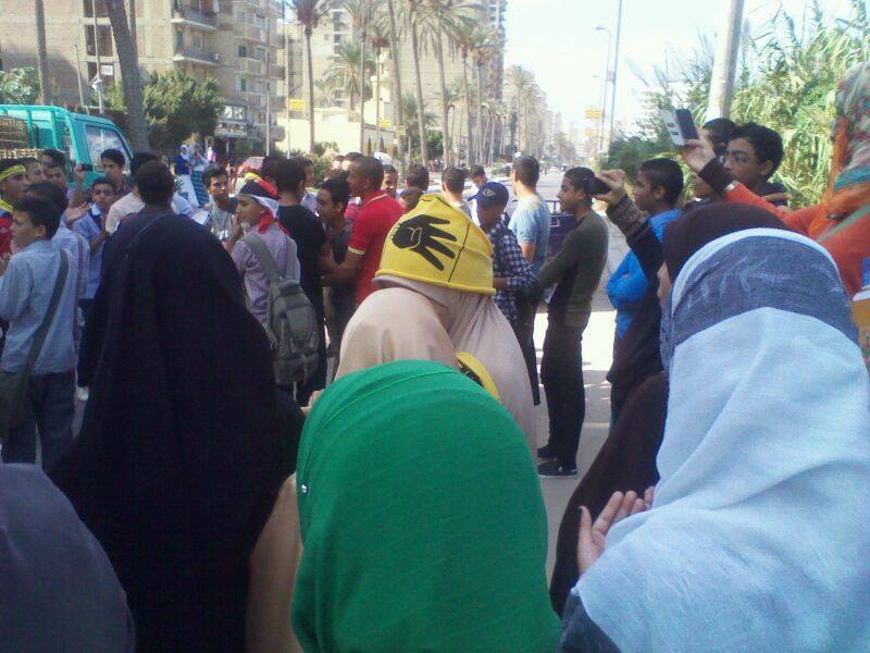 فيما كانت هناك  وقفه لطلاب ثانوي ضد الانقلاب امام كليه درسات اسلاميه بنات  التابعه لجامعه الازهر  بالاسكندريه وقد خرج طالبات الجامعه وانضموا لطلاب الثانوي ونددوا بمجاز النقلاب وموقف شيخ الازهر منها.