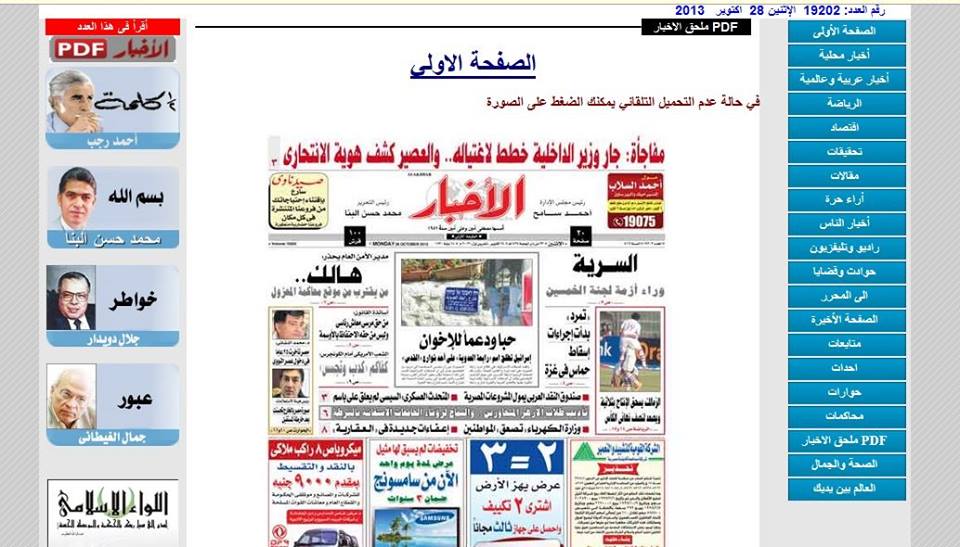 ومن تلك المواقع التي تداولت ذلك الخبر،اليوم السابع ،الوفد، الأخبار،فيتو، البلد