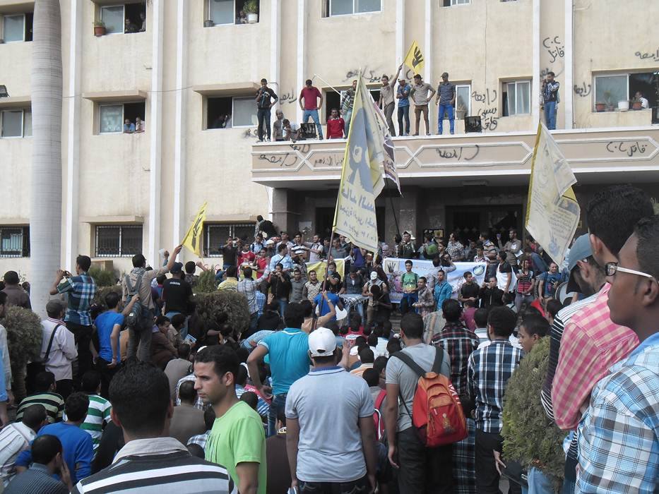 وطالب الطالب بالإفراج عن زملائهم المعتقلين والقصاص للشهداء كما طالبوا بإقالة شيخ الازهر ورئيس الجامعة الدكتور أسامة العبد.