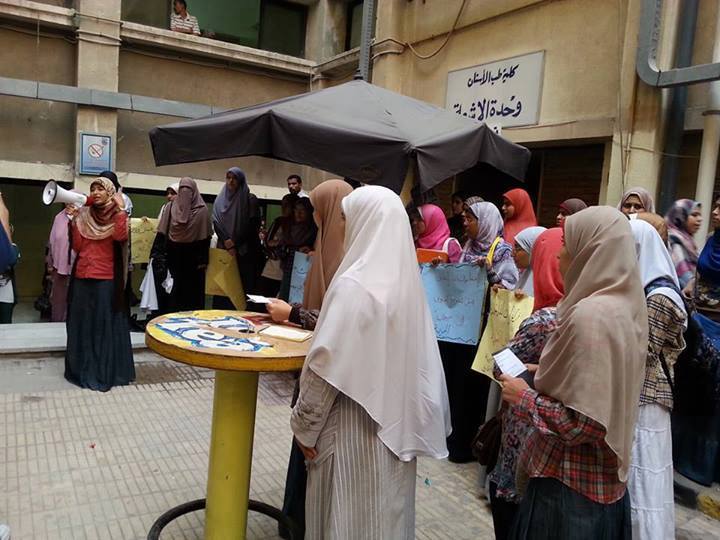 قام طلاب وطالبات كلية طب أسنان جامعة الاسكندرية بوقفة احتجاجية للتنديد بإعتقال و حبس الطالبات .