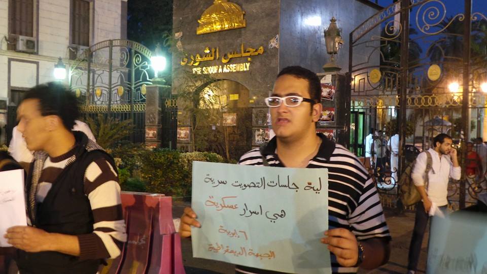 نظم عدد من النشطاء السياسيين وحركة شباب السادس من ابريل "الجبهة الديمقراطية" وقفة احتجاجية مساء اليوم امام مجلس الشوري لرفض جلسات لجنة الخمسين السرية والمطالبة بان تكون الجلسات معلنه للشعب " عمرو بيه عمرو بيه .. الجلسات سرية ليه ".