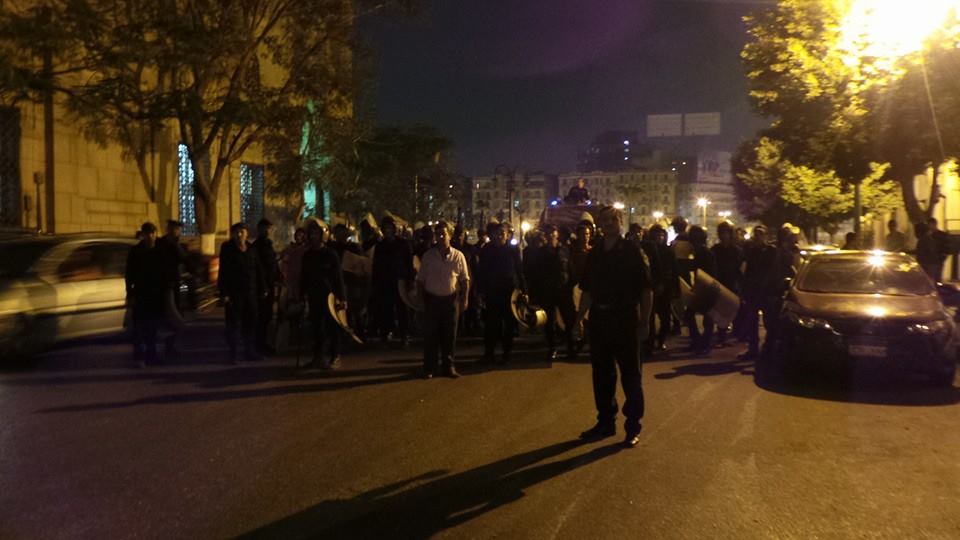و كانت قوات الامن اغلقت شارع عمر مكرم المؤدي للتحرير امام تظاهرة النشطاء و6 ابريل الجبهة الديمقراطية ,المتجهة الي مسرح باسم يوسف .
