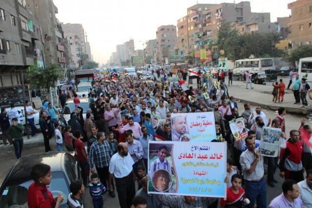 انطلقت بعد صلاة عصراليوم (الثلاثاء) مسيرة كبيرة من مسجد التقوى بشبرا الخيمة مسيرة حاشدة لتحية صمود الرئيس في وجه ما وصفوه بـ"المحاكمه الهزلي".