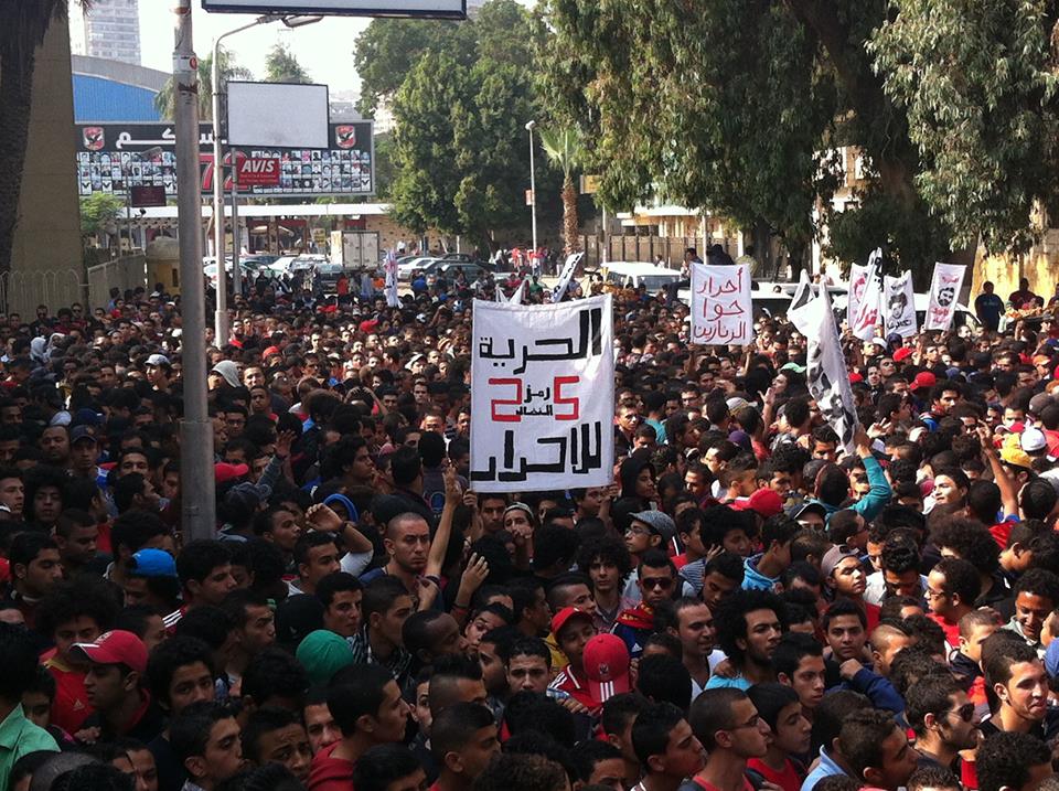 انطلقت مسيرة أولتراس أهلاوي من أمام نادي الأهلي بالجزيرة وذلك للمطالبة بالإفراج عن زملاؤهم المعتقلين.