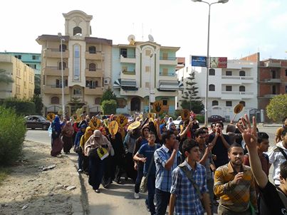 فيما قام طلاب ضد الانقلاب بدمنهور بدأت من المجمع العلمي لجامعه دمنهور متجهه الي المنطقه الازهريه متحده مع طلاب ثانوي ضد الانقلابمرددين هتافات " الطلبه قالت كلمتها .. السيسي تحت جزمتها "و" اثبت يا شعب خليك حديد .. وراك يا شعب رئيس شديد "و"الطلبه تحيي صمووود الرئيس ".