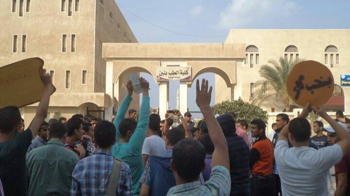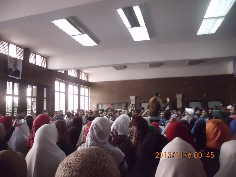 نظم طلبة جامعة بنى سويف اليوم مظاهرة بدأت عقب صلاة الظهر من مسجد الجامعة ليحيى فيها الطلاب صمود وثبات الرئيس محمد مرسى وارتفعت اعلام وبانرات الرئيس وايضا اللافتات التى تطالب بالافراج عن كافة المعتقلين السياسين ……