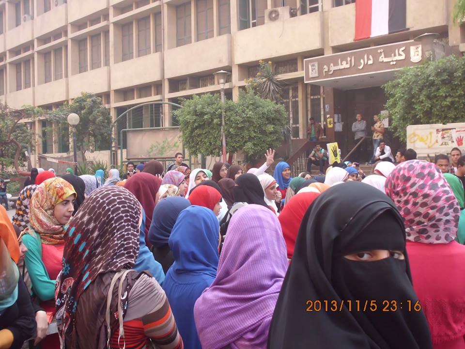 أما طلاب دار العلوم جامعة القاهرة فقد تظاهروا ضد قرار الإدارة بفصل 4 زملاء لهم حيث تجمع عدد كبير من الطلبة والطالبات للتنديد بقرار مجلس إدارة الكلية بفصل 4 زملاء لهم بزعم من إدارة الكلية مشاركتهم فى الوقفة التى حدثت ضد المفتى السابق الدكتور على جمعة أثناء زيارته للجامعة .