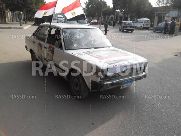 نظم مؤيدو السيسى – زعيم الانقلاب – مسيرة سيارات جابت بعض شوارع حلوان بعد ظهر اليوم لتايد عبد الفتاح السيسى وتكونت المسيرة من إحدى عشر سيارة عليها أعلام مصر وصور عبد الفتاح السيسى وتحمل إحدى السيارات مكبرات صوت تذيع أغنية تسلم الأيادي