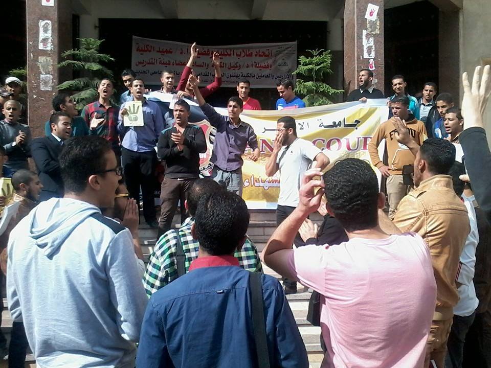 كما نظم طلاب ضد الانقلاب بكلية الشريعة والقانون جامعة الازهر بدمنهور وقفة احتجاجية فى بداية فعاليات اسبوع الحرية للشرفاء .