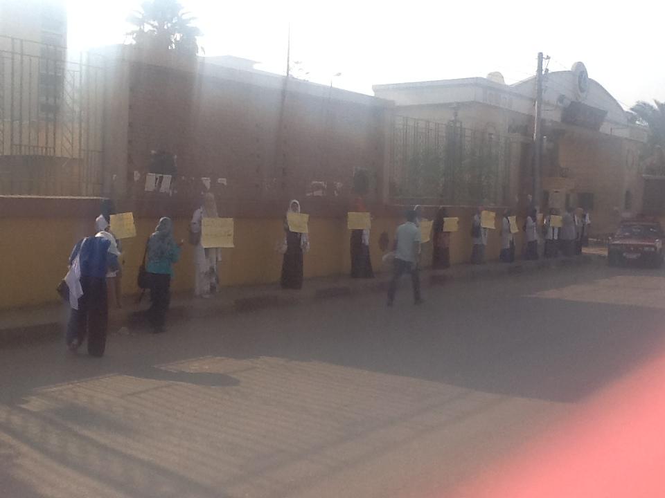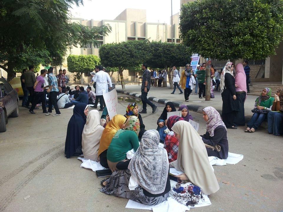كما قاموا  بعمل سلاسل بشرية على طول اسوار الكلية احتجاجا على اعتقال زميليهم محمد الظريف الطالب بالفرقة الخامسة ويحيى سلطان الطالب بالفرقة الثالثة في مظاهرات يوم الجمعة الماضيه ضد حكم العسكر ليصبح عدد المعتقلين من الطلاب ثلالثة طلاب حيث تم اعتقال الطالب بالفرقة الثانية لطفي الليثي منذ اسبوع تقريبا بالاضافة الى اعتقال الدكتور حامد عطية بقسم الباطنة ونقيب الاطباء البيطريين ونائب رئيس الجامعة من ما يقارب الشهر .. رفع الطلاب خلالها اللافتات المعبرة التي تنادي بحرية زملائهم ..