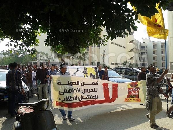 بدأت الفعاليات أمام كلية الزراعة بسلاسل بشرية ممتدة ، أعقبها المسيرة الحاشدة التي جابت كليات الجامعة من كلية التربية والعلوم والهندسة وغيرها من الكليات ، رافعين صوراً لزميلهم الشهيد " عبد الله أبو بكر " ، وصوراً لزملائهم المعتقلين ، مرددين هتافات " لسة الطالب هو الحل .. مهما شاف من العسكر ذل " ، " اصحي ياطالب .. واعرف دورك في العملية .. مهما تزاكر مهما هتتعب .. تعبك رايح للحرمية " ، " يا صاحبنا يامعتقل .. شد حيلك يابطل " .
