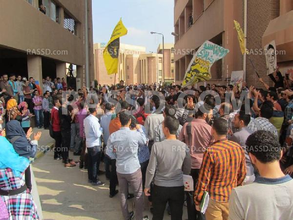 أطلق الطلبة بعض الشماريخ التى اشعلت الحماس، مرددين هتافات منها "يسقط يسقط حكم العسكر"، شمال يمين طلعوا المحبوسين".