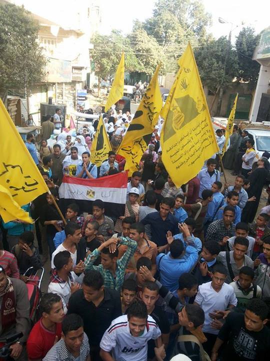 وفي ذات السياق، انطلقت مسيرة من أمام المدرسة الثانوية عقب انتهاء اليوم الدراسى, وجابت أنحاء وشوارع المدينة، وحمل المشاركون فيعا اللآفتات الرافضة لحكم العسكر، وصورا للمعتقلين والشهداء, وملوحين للمارة بإشارة رابعة.