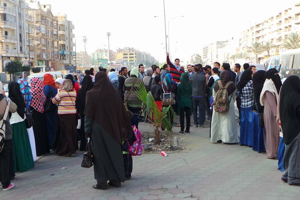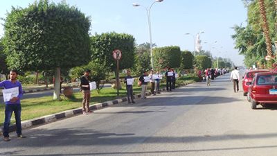 نظم عدد من طلاب جامعة 6أكتوبر وقفة صباحية لطلاب امام الباب الرئيسي للجامعة تنديدا باحداث الازهر أمس.