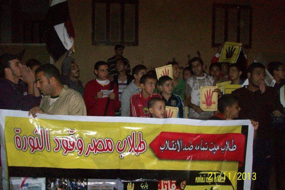إنطلقت اليوم بعد صلاة المغرب اليوم الخميس مسيرة طلابية ، بقرية ميت تمامة التابعة لمركز منية النصر بمحافظة الدقهلية ,مناهضة للإنقلاب العسكرى, و منددة باقتحام الامن لمدينة الازهر الجامعية.